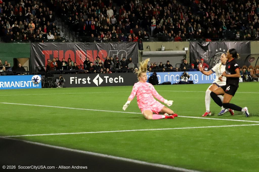 In the 57th minute, the Thorns went another woman down when Reyna Reyes was ejected after a long VAR review. But amazingly, through great defense and a strong performance by goalkeeper Morgan Messner, the Thorns earned the 2-0 shutout.